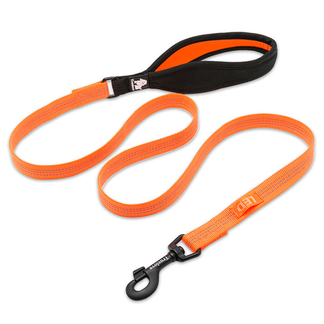 La correa tiene sujetador duraflex, que presentan un diseño resistente con resorte y se pueden enganchar y desabrochar a un arnés o collar muy fácilmente. Como el mango es de poliéster y neopreno, amortigua suavemente las fuerzas de tracción mientras camina.