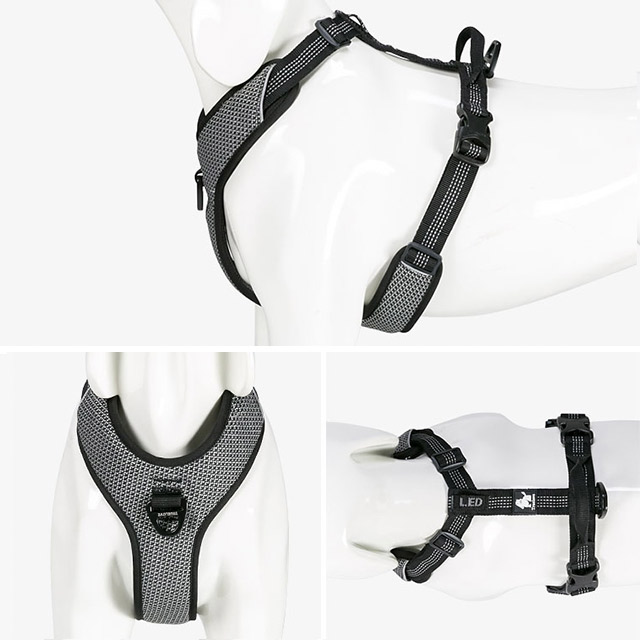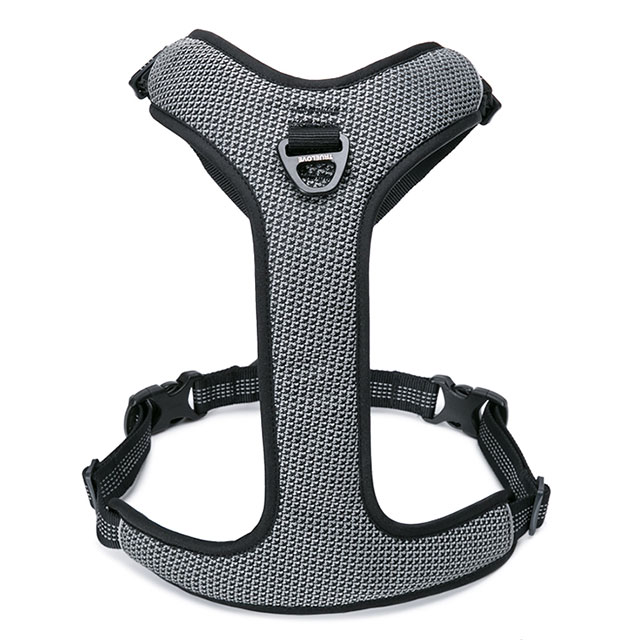 Este arnés es muy recomendable para perros que tienen un arco de hombro alto porque está en la espalda sin relleno adicional. Está conectado por cintas hechas de cinta de nylon trenzado duradera y cómoda, equipada con materiales reflectantes 3M™ Scotchlite™, que, debido a su diseño, asegura que no dañe el pelaje, pero aún ofrece máxima seguridad y durabilidad.